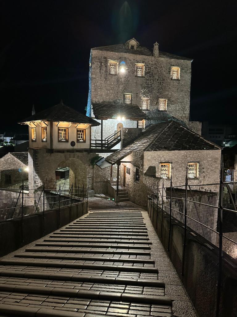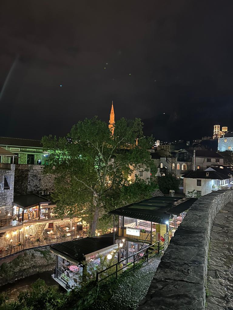 Varışımız akşamı buldu. Oldum olası merak ettiğim ve canlı görmek istediğim Mostar Köprüsü’nü ilk kez akşam görmek nasip oldu. Köprüyü bu kadar yüksek ve büyük beklemiyordum. Fotoğraflarda gözüme hep küçük bir köprüymüş gibi gelirdi. Mostar’ın akşamı ayrı sabahı ayrı güzel. Bu açıdan burada bir gece konaklamayı mutlaka tavsiye ediyorum.
