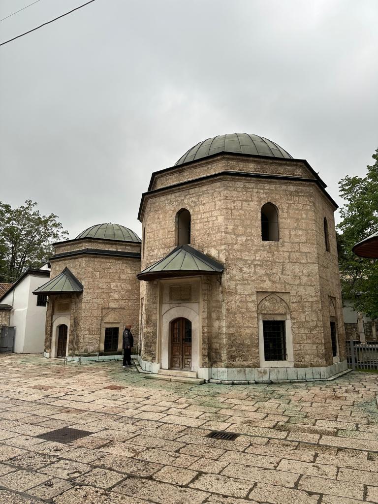 Sabah çarşıda meşhur boşnak böreğiyle kahvaltımızı yaptıktan sonra turun başlangıç noktasına gittik. Tur tam saatinde başladı. Gazi Hüsrev’den başlayarak önce eski çarşıyı sonra yeni Saraybosna’yı gezdik yürüyerek. Gazi Hüsrev Bey Külliyesi Balkanlardaki en önemli Osmanlı yapısı olarak nitelenebilir. Kanuni döneminde 1530’da açılan külliye camisi, türbesi, hamamı, saat kulesi, bedesteni, kütüphanesi, tekkesi, vakıf binası ve medresesi ile hala hizmet veriyor. Sadece bu külliyeyi gezmeniz 2 saatinizi alır. Kütüphanesinden ayrıca bahsedeceğim.