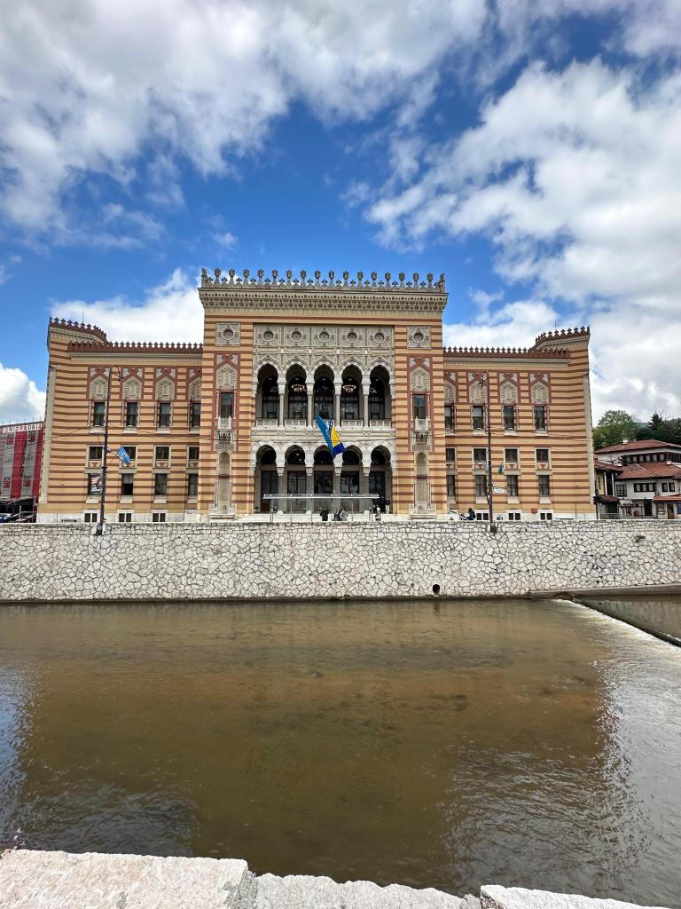 Yine çarşının doğu çıkışında Saraybosna Belediyesi Binası yer alıyor. Avusturya-Macaristan İmparatorluğu döneminde 1896 yılında açılan ve Barok-Mağribi mimariyi kendisinde mezceden bu ikonik bina uzunca bir süre belediye binası olarak kullanılmış, 92-95 savaşı sırasında ise kütüphane ve devlet arşivi olarak işlev görüyormuş. Binanın karşısında yer alan kayak merkezine konuşlanan Sırp topçuları kasıtlı olarak binayı topa tutup bütün arşivi yakarak yok etmişler. Müze olarak ziyaret edilebiliyor.