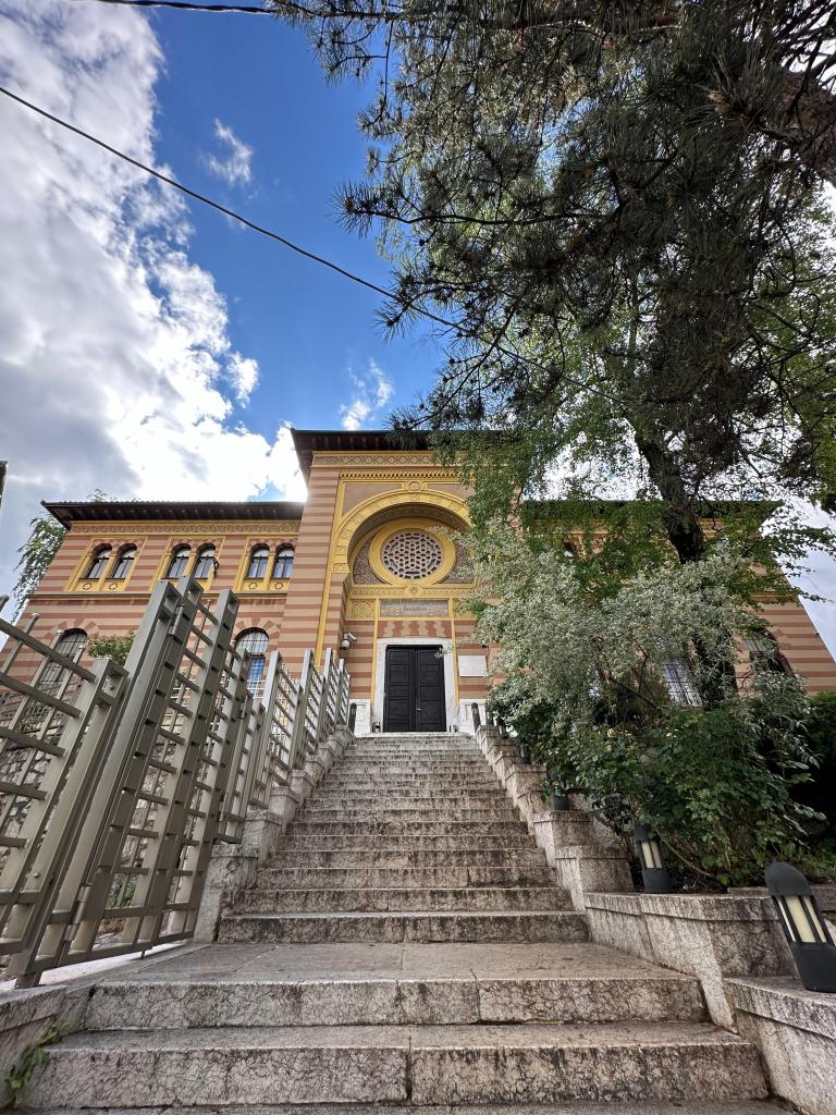 Şehitliğe çıkarken yokuşun sağ tarafında Bosna’daki din işlerini idare eden Riyaset adını verdikleri kurumun ana binasına denk geldik. Modern mimarisiyle dikkat çeken binayı seyrederken kapıdaki güvenlik yanımıza geldi ve Boşnakça bir şeyler dedi. Hiçbir şey anlamadık haliyle. İngilizce ve Arapça mukabele ettim fakat anlaşamadık. İçimde bir anda Almanca konuşma hissi doğdu ve Almanca biliyor musun diye sordum. Adamın bir anda gözleri parıldadı ve bildiğini söyledi. Meğer birkaç yıl Almanya’da çalışmış zamanında. Diyaloğu bu şekilde kurunca sağolsun bizi içeri alıp binayı gezdirdi ve terasından Başçarşı ve Saraybosna’yı görmemize izin verdi. Binanın yapımında Vakıflar Genel Müdürlüğü büyük finansal yardımlar yapmış, bu yüzden bize ayrı bir ilgi gösterdi.