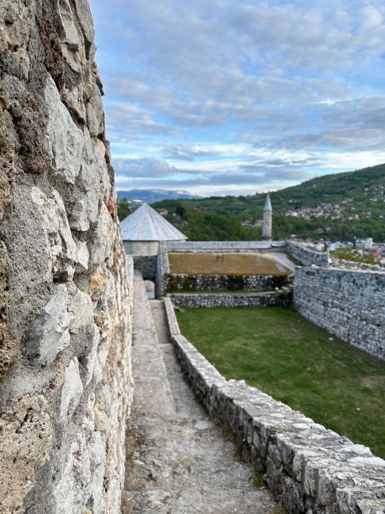 İkindileri kılıp Bosna’daki üçüncü durağımız Travnik’e doğru yola koyulduk. Saraybosna’nın 90 km. kuzeybatısında yer alıyor. Arabayla bir buçuk saat sürüyor. Travnik de bir Osmanlı şehri olarak 15. yüzyılda kurulmuş. 1699-1851 yılları arasında ise Osmanlı’nın Bosna başşehirliğini yapmış. Bu yüzden önemli bir yer. Şehre girişte hemen sağ tepedeki kale dikkatinizi çekiyor. Osmanlılar fethettiğinde ince duvarlara sahip küçük bir hisardan ibaretken Osmanlılar burayı tahkim edip müstahkem bir kale haline getirmişler. Günümüzde bütünüyle ayakta. Giriş kapısının üstünde Sultan 2.Beyazıd’ın yaptırdığı bir minare bulunuyor. Ayasofya’nın minaresine çok benziyor. Cami olmadan doğrudan sur üzerine yapılmış bu minare ilginç bir görüntü arz ediyor. Kaleden bütün Travnik’i kuş bakışı temaşa etmeniz mümkün.